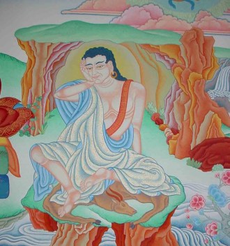 Индийский практик тантры Тилопа, получивший передачу махамудры от будды Ваджрадхары, и его ученик Наропа